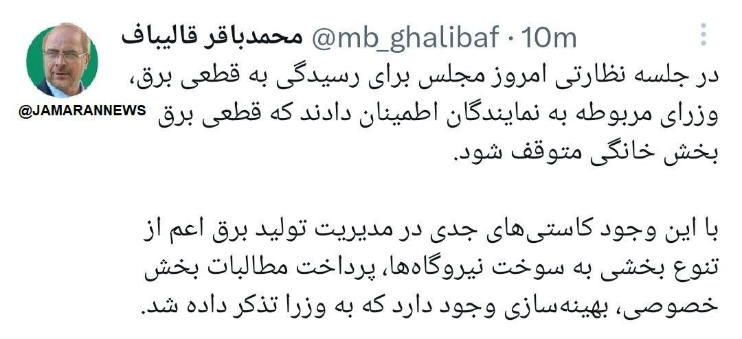 🔹قول برای اینکه دیگر برق خانه ها قطع نشود