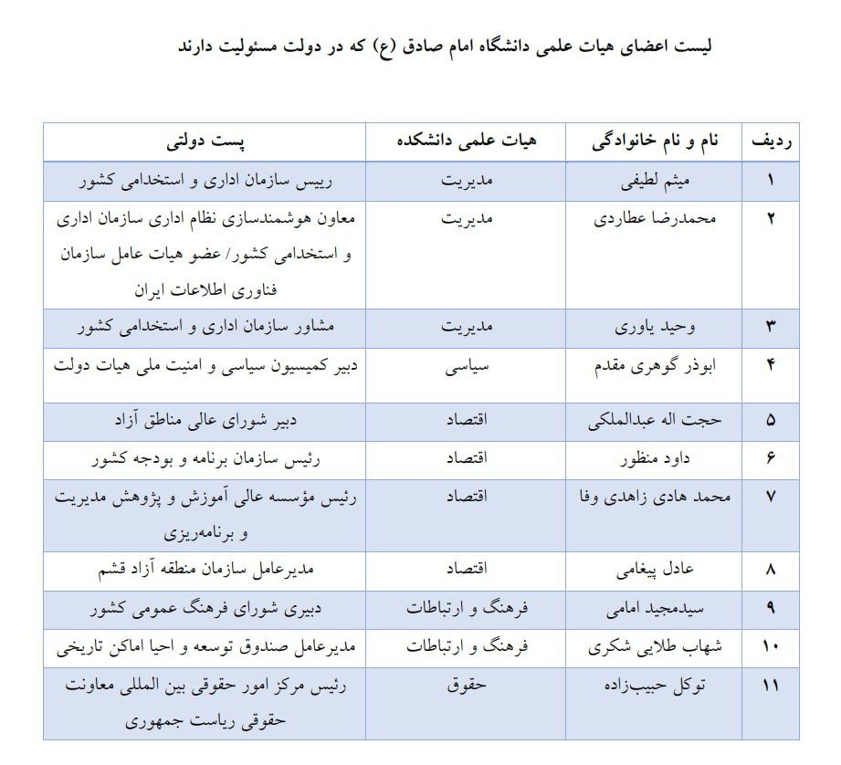 🔹لیست امام صادقیهایی که در دولت مسئولیت دارند