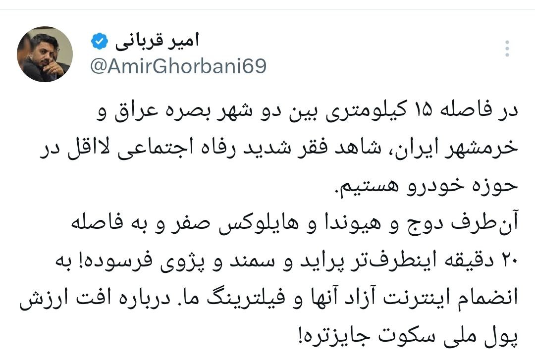 🔹مقایسه خرمشهر ایران با بصره عراق در فاصله ۱۵ کیلومتری: آنطرف دوج و هیوندا اینطرف پراید و پژو بانضمام فیلترینگ!