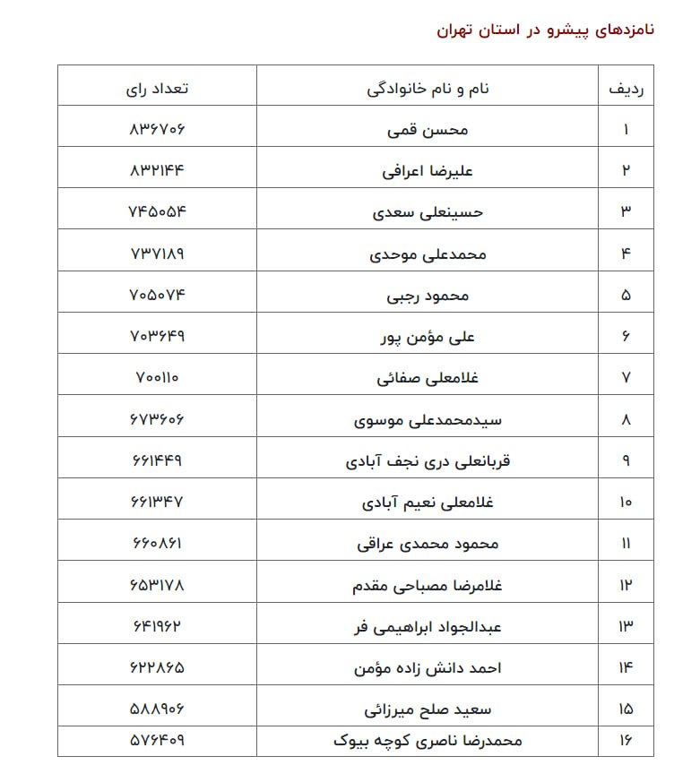 🔹میزان دقیق آراء خبرگان تهران اعلام شد
