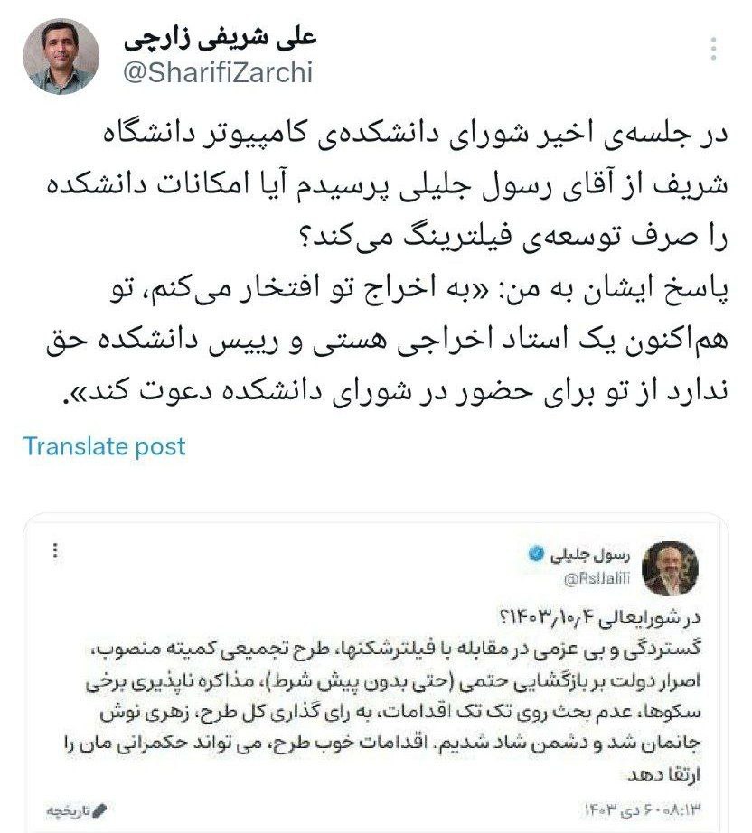 🔹همچین شخصی(جلیلی) دو سال رئیس دانشگاه شریف بود در دولت سیزدهم!