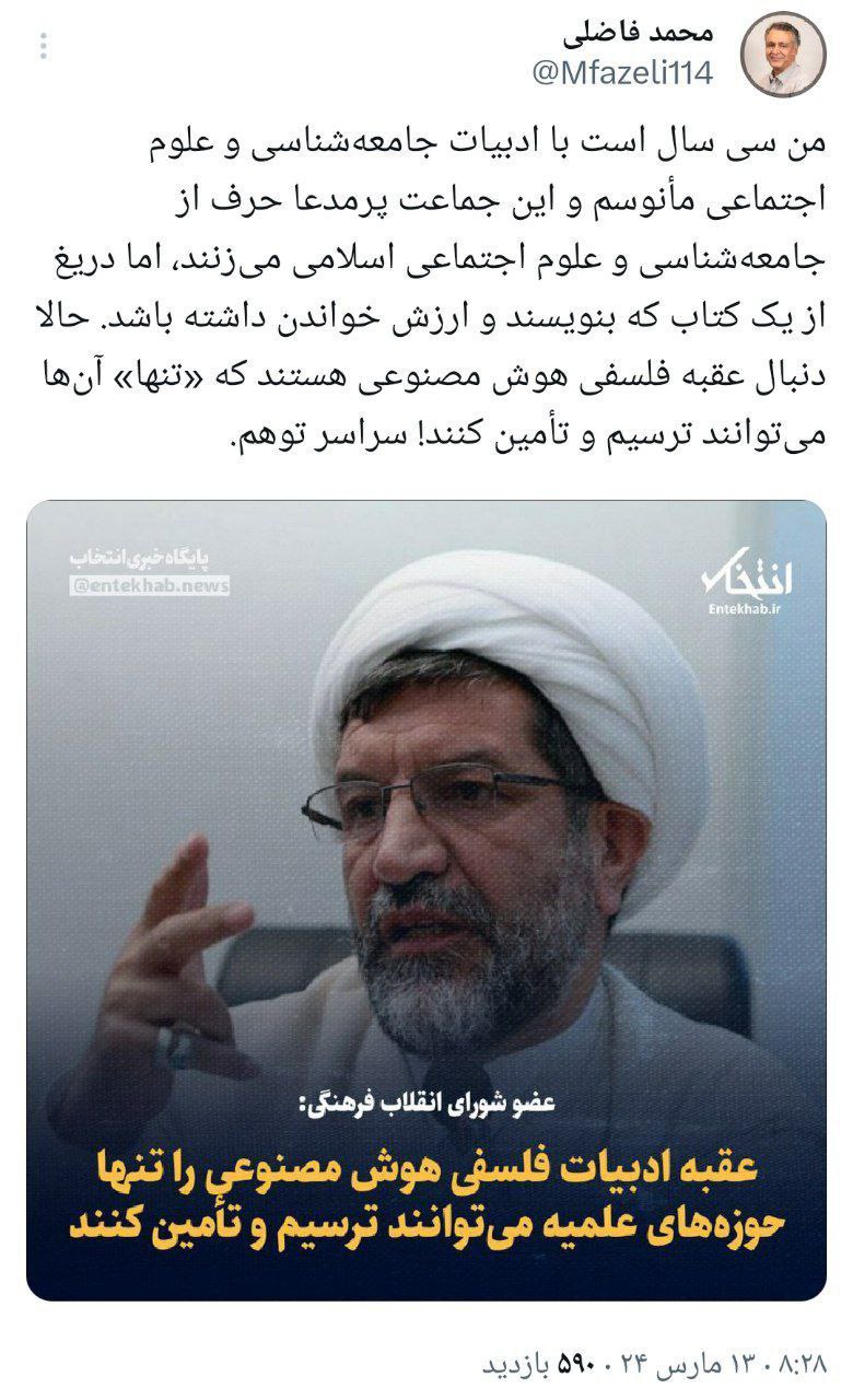 🔹واکنش محمدفاضلی جامعه شناس به گفته های یک عضو شورای انقلاب فرهنگی