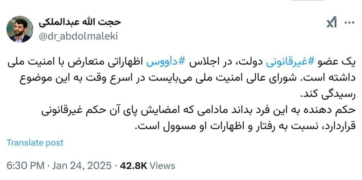 🔹وزیرِ معزولِ دولت رئیسی، خالقِ ایدهی ایجاد شغل با یک میلیون تومان و ساختِ لامبورگینیِ بومی در کشور: شورای عالی امنیت ملی میبایست در اسرع وقت با ظریف برخورد کند.
