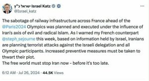 🔹وزیر خارجه اسرائیل خرابکاریهای گسترده امروز در فرانسه را به ایران نسبت داد!