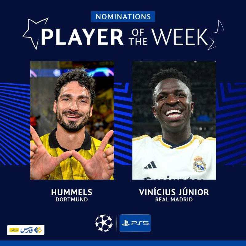 🔹وینیسیوس جونیور و متس هوملس به عنوان کاندیداهای کسب جایزه بهترین بازیکن هفته لیگ قهرمانان اروپا انتخاب شدند