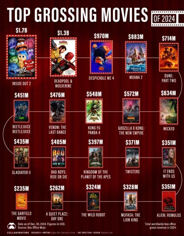 🔹پرفروشترین فیلمهای سینمای جهان در سال ۲۰۲۴