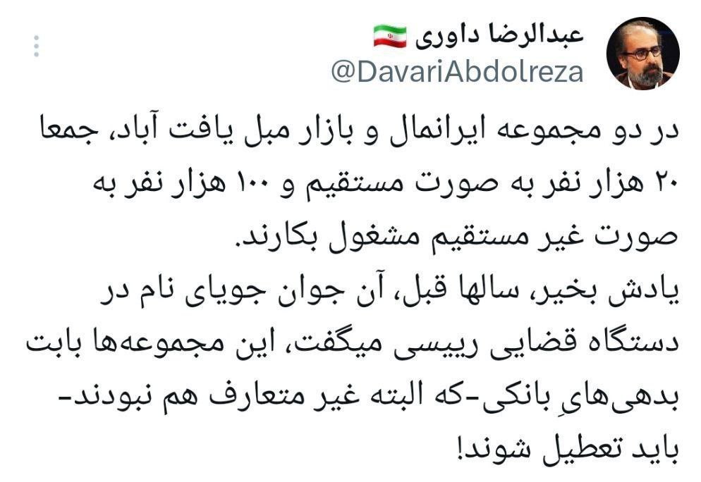 🔹چند هزار نفر در ایرانمال و بازار مبل کار میکنند؟