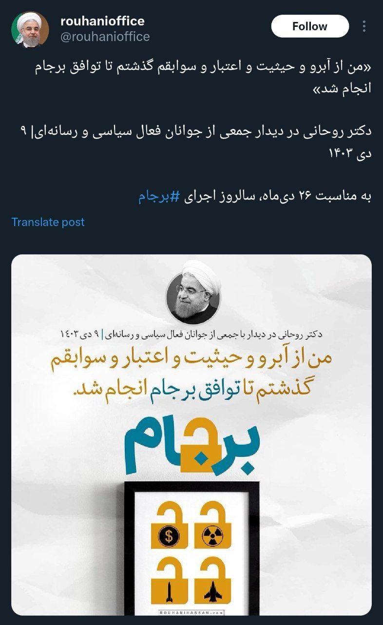 🔹 حسن روحانی در سالگرد برجام منتشر کرد