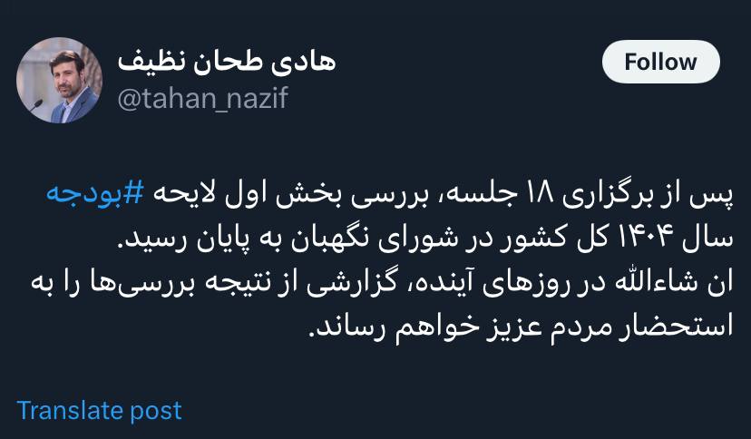 🔹 سخنگوی شورای نگهبان: پایان رسیدگی به بخش اول لایحه بودجه ۱۴۰۴ در شورای نگهبان