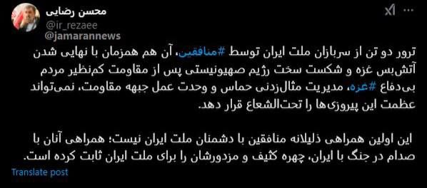 🔹 محسن رضایی گروهک تروریستی منافقین را عامل ترور دو قاضی اعلام کرد
