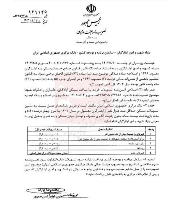 🔹 وام مسکن ایثارگران ۷۵۰ میلیون تومان شد