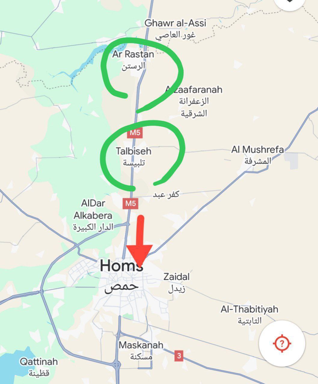 🔹 پس از تصرف شهرهای الرستن و تلبیسه، اکنون تروریست های تحریرالشام در ۵ کیلومتری ورودی شهر حمص هستند.