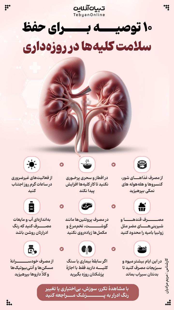 🔹 ۱۰ توصیه برای حفظ سلامت کلیهها در روزهداری