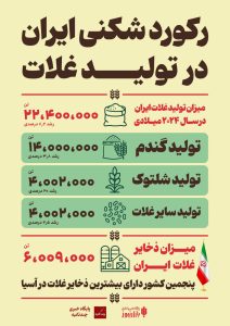 ” /> 🔹سازمان جهانی خواروبار و کشاورزی ملل متحد (فائو) کل تولید غلات ایران طی سال ۲۰۲۴ را ۲۲ میلیون و ۴۰۰ هزار تن برآورد کردکه نسبت به سال گذشته افزایش ۶.۲ درصدی را نشان می دهد.