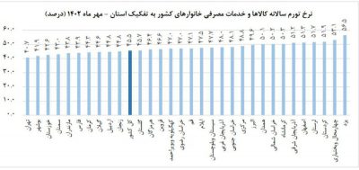 تهران گرانترین استان کشور است اما پایین ترین نرخ رشد تورم را دارد. بعد از آن بوشهر و خوزستان و ۷ استان دیگر که از نرخ میانگین، تورم پایین تری دارند.