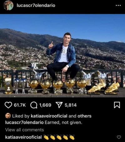 🔹کاتیا آویرو، خواهر کریستیانو رونالدو، با لایک کردن پستی به این اشاره کرد که کریس، برخلاف مسی، خودش عناوین را بدون کمک هیچ سازمانی به دست میآورد.