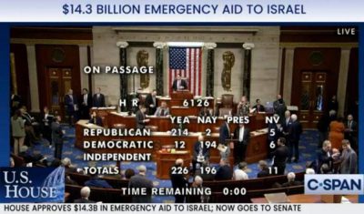 کمک ۱۴ میلیارد دلاری آمریکا به اسراییل در کنگره تصویب شد.