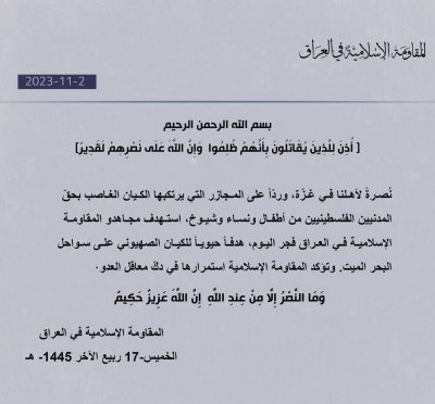 🔹مقاومت اسلامی عراق اعلام کرد که هدف حیاتی اسرائیل در سواحل بحرالمیت را هدف قرار دادیم.