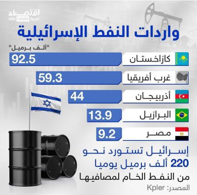 🔹کشورهای تامین کنندهٔ نفت اسراییل واحد: هزار بشکه در روز