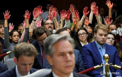 🔹حضور معترضان به جنگ غزه و کشتار شهروندان غیرنظامی در جلسه استماع وزرای خارجه و دفاع ایالات متحده در مجلس سنا/رویترز