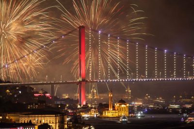آتش بازی در استانبول به مناسبت صدمین سالگرد جمهوری ترکیه