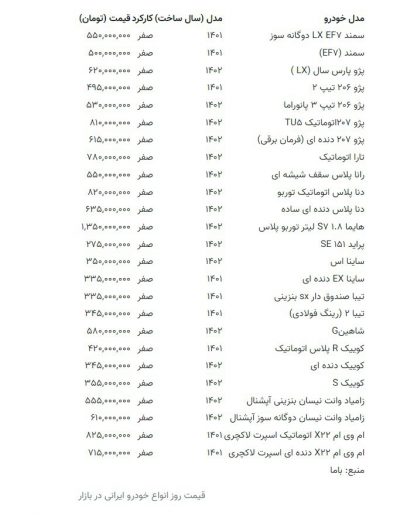 جهش گسترده قیمتها در بازار خودرو/ آخرین قیمت پژو، دنا، ساینا، کوییک و شاهین