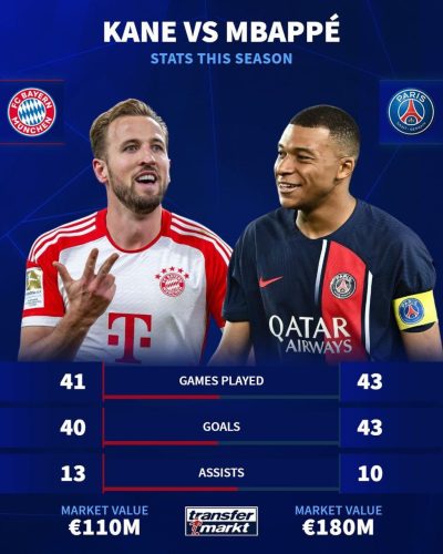🔹مقایسه عملکرد هری کین و امباپه در تمامی رقابتهای فصل جاری