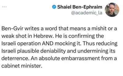 🔹شبکه ۱۲ تلویزیون اسرائیل: وزارت خارجه اسرائیل از نمایندگان خود در خارج از کشور خواست در مورد آنچه در ایران رخ داده اظهار نظر نکنند.
