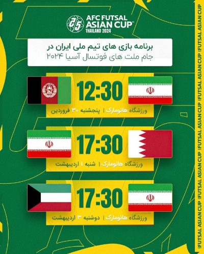 🔹برنامه دیدارهای تیم ملی فوتسال در جام ملتهای فوتسال آسیا ۲۰۲۴ تایلند