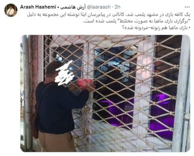 🔹یک کافه بازی در مشهد پلمب شد. کانالی در پیامرسان ایتا نوشته این مجموعه به دلیل “برگزاری بازی مافیا به صورت مختلط” پلمب شده است. بازی مافیا هم زنونه-مردونه شده؟