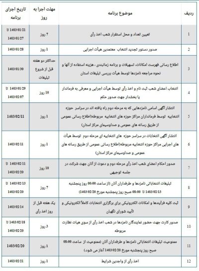 🔹ستاد انتخابات کشور، کلیات برنامه زمانبندی مرحله دوم انتخابات دوازدهمین دوره مجلس شورای اسلامی را منتشر کرد.