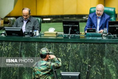 عکسی از احترام نظامی به محمدباقر قالیباف در صحن علنی مجلس