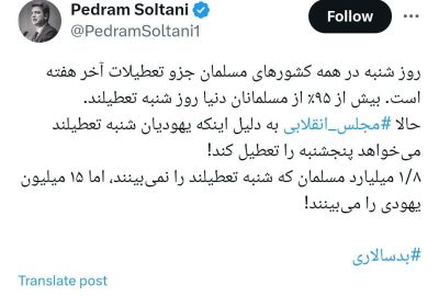 حالا مجلس انقلابی به دلیل اینکه یهودیان شنبه تعطیلند میخواهد پنجشنبه را تعطیل کند!