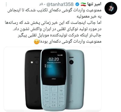 یکی از فعالین رسانهای از پیگیری شرکت تولیدکننده نوکیای تقلبی برای ممنوعیت واردات گوشی دکمهای خبر داد.