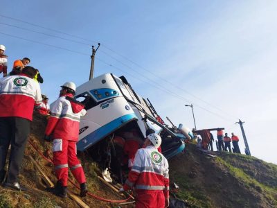 🔹تصاویری از واژگونی اتوبوس در گیلان با ۱۸ مصدوم و ۵ جانباخته