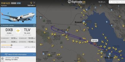 پرواز دبی-تلآویو هواپیمایی فلایدوبی، در تلآویو فرود نیامد و در حال بازگشت به دوبی است