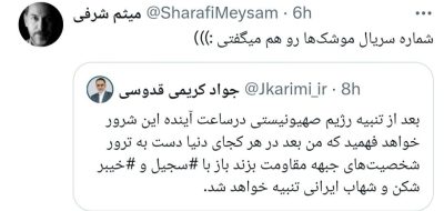 🔹واکنش برخی چهره های سیاسی و رسانه ای به توییت عجیب کریمی قدوسی