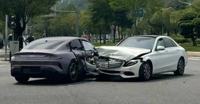 🔹تصویری که در شبکههای اجتماعی منتشرشده، ظاهراً اولین مورد گزارششده از تصادف خودرو برقی جدید شیائومی SU7 را نشان میدهد. در این تصویر، خودرو SU7 غول چینی با یک مرسدس بنز سدان سفید رنگ تصادف کرده و باعث آسیب خودرو بنز شده است. 🔹خودروی برقی شیائومی SU7 که بیشترین آسیب را در سمت راست خود…