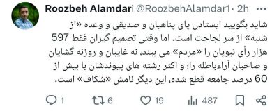 🔹واکنش برخی فعالان سیاسی و رسانه ای به بازگشت صدیقی به نماز جمعه