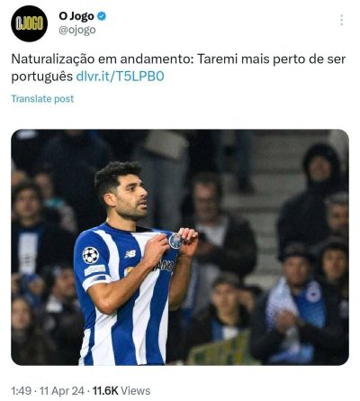 روزنامه پرتغالی «ojogo» مدعی شد: 🔹طارمی گامهای نخست اداری را برای دریافت ملیت پرتغالی برداشته است و قصد دارد در سال ۲۰۲۴ تابعیت این کشور را به دست بیاورد. 🔹طارمی در ابتدای سال جاری میلادی مجوز اقامت دائم در کشور پرتغال را به دست آورده است که یکی از شروط اساسی برای اخذ تابعیت این…