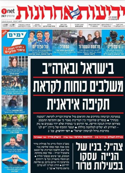 🔹صفحه یک روزنامه «یدیعوت آحارونوت» امروز با تیتر: اسرائیل و ایالات متحده در حال آماده شدن برای پاسخ ایران هستند