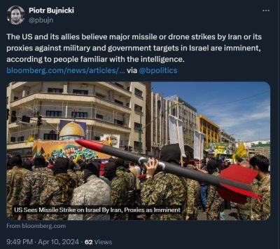 🔹خبرنگار بلومبرگ دقایقی قبل نوشت: آمریکا و متحدانش معتقدند حملات سنگین موشکی/پهپادی ایران به اسرائیل قریبالوقوع است