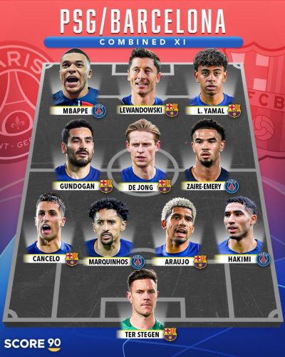 تیم منتخب از بازیکنان پاریسنژرمن و بارسلونا به بهانه دیدار امشب