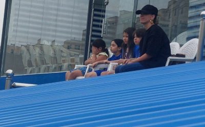 🔹تمرین امروز استقلال علاوه بر حضور تماشاگران، مهمانان ویژهای را نیز داشت. 🔹دختر جواد نکونام که برای تماشای تمرین آبیها در کنار خانواده رافائل سیلوا حضور دارد، برای جلوگیری از عکسبرداری، صورت خود را با دست پوشاند!