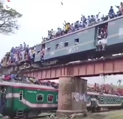 🔹ویدیوهای منتشر شده در شبکههای مجازی قطارهای مملو از جمعیت بنگلادش را در آستانه عید فطر به نمایش میکشد. مردم برای برگزاری این عید از سراسر بنگلادش نزد خانوادههایشان باز میگردند. 🔹در یکی از این تصاویر، کسانی که بر روی سقف قطار سوار شدهاند با رسیدن به پل برای محافظت از جان خود خم میشوند،…