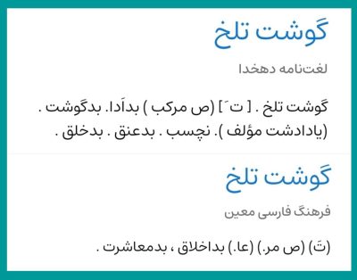 مدعیان انقلابیگری دور افتادهاند که ثابت کنند رسول خدا(ص) و علی(ع) گوشتتلخ بودهاند! ✍️ رحمتاله بیگدلی 🔹مجیزگویان قدرتوثروت دور افتادهاند که اهانت علیرضا پناهیان به رسول خدا(ص) و امام علی(ع) را توجیه و ثابت کنند که آن دو بزرگوار گوشتتلخ بودهاند! معانی گوشتتلخ در لغتنامه دهخدا و فرهنگ معین بهاین شرح است: «بداَدا، بدگوشت، نچسب،…