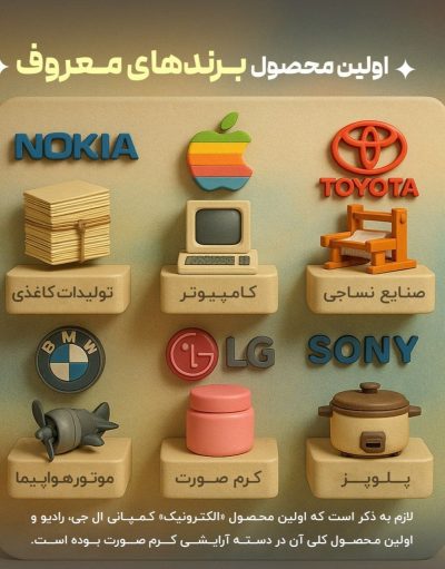 اولین محصول شگفت انگیز ۶ برند معروف چه بود؟ در این اینفوگرافیک ببینید، برندهایی معروفی مانند اپل نوکیا و… اولین محصول تولیدی چه زدهاند.