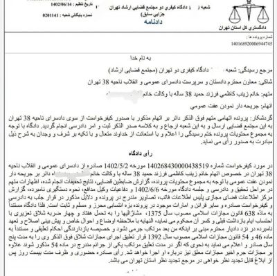 🔹زینب کاظمی، مهندسی که در جلسه مجمع سازمان نظام مهندسی حجاب از سر برداشت به ۷۴ ضربه شلاق محکوم شد 🔹کاظمی با اتهام جریحهدار کردن عفت عمومی، روز ششم شهریور، در دادگاه حاضر شده است.