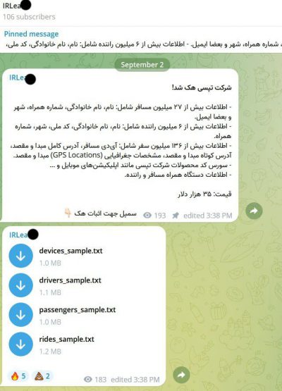 🔹اطلاعات کاربران تپسی به قیمت ۳۵ هزار دلار به فروش گذاشته شد!