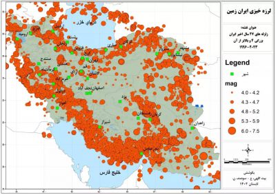 🔹 ۴تای آن بین ۷تا ۷.۵ ریشتر بوده، ۳۲مورد بین ۶ تا۷ ریشتر و ۴۰۴ مورد هم بین ۵تا ۶ریشتر. 🔹استانهای کرمان، فارس و هرمزگان هم زلزلهخیزترین ها در کشور هستند. 🔹 کمتر از یک درصد زلزههای ۲۷سال اخیر خطرناک بودهاند و هزاران کشته برجا گذاشتهاند.